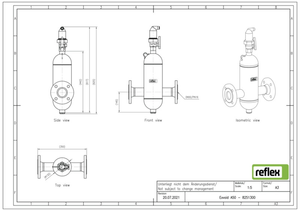 Reflex exair lucht DN 50 flensaansluitin